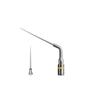 Le mini-insert ET25L « Long » en Titane-Niobium est destiné à la reprise de traitement dans les canaux longs et rectilignes. Sa conicité est de 3%. Il s’utilise avec ou sans spray. Son alliage permet une transmission remarquable des vibrations ultrasonores. Cet instrument est très fin (inserts “aiguilles”) et présente une résistance à la rupture incomparable. Il a par ailleurs une excellente flexibilité ce qui lui procure à la fois puissance et précision.